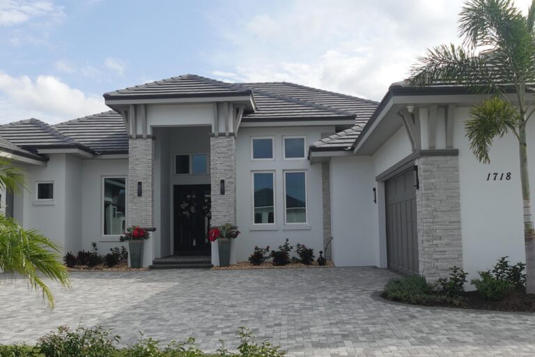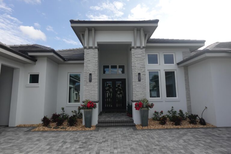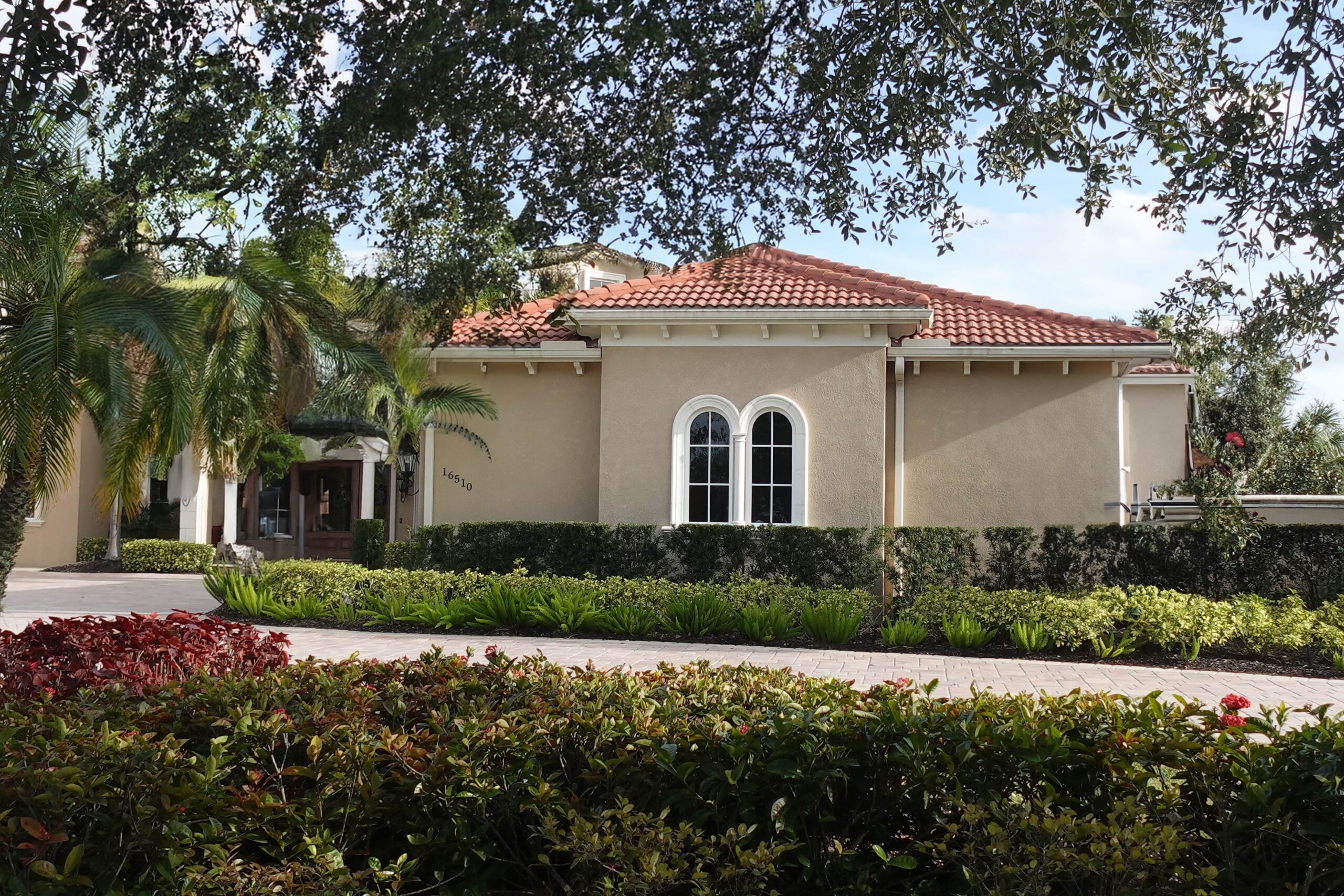 For this photo we created and installed the white GFRC arched window surrounds. John Cannon Homes