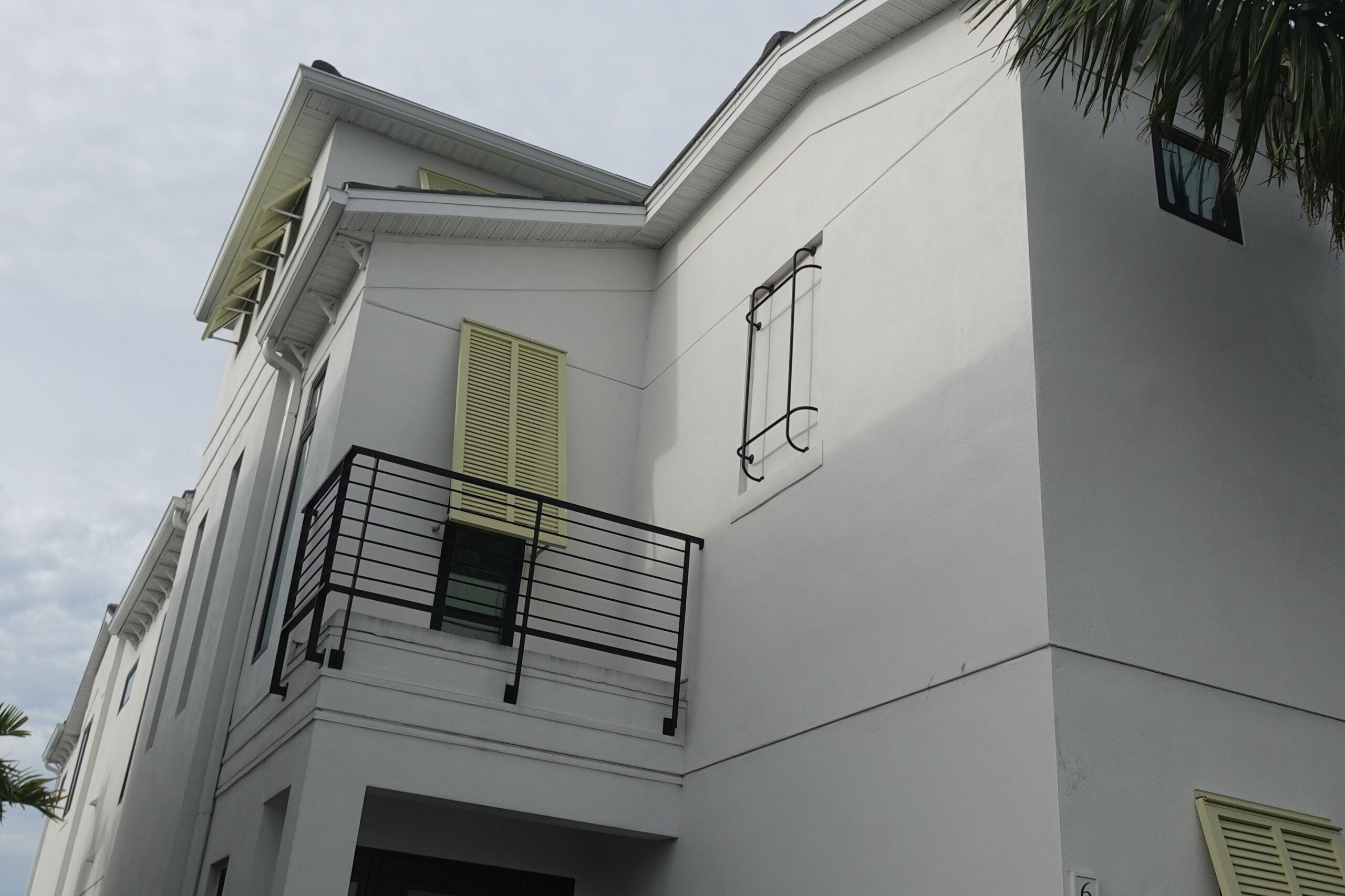 Azek Bahama Shutters (Yellow Shutters) Aluminum Crosses Piece (Black item to the right of shutters)